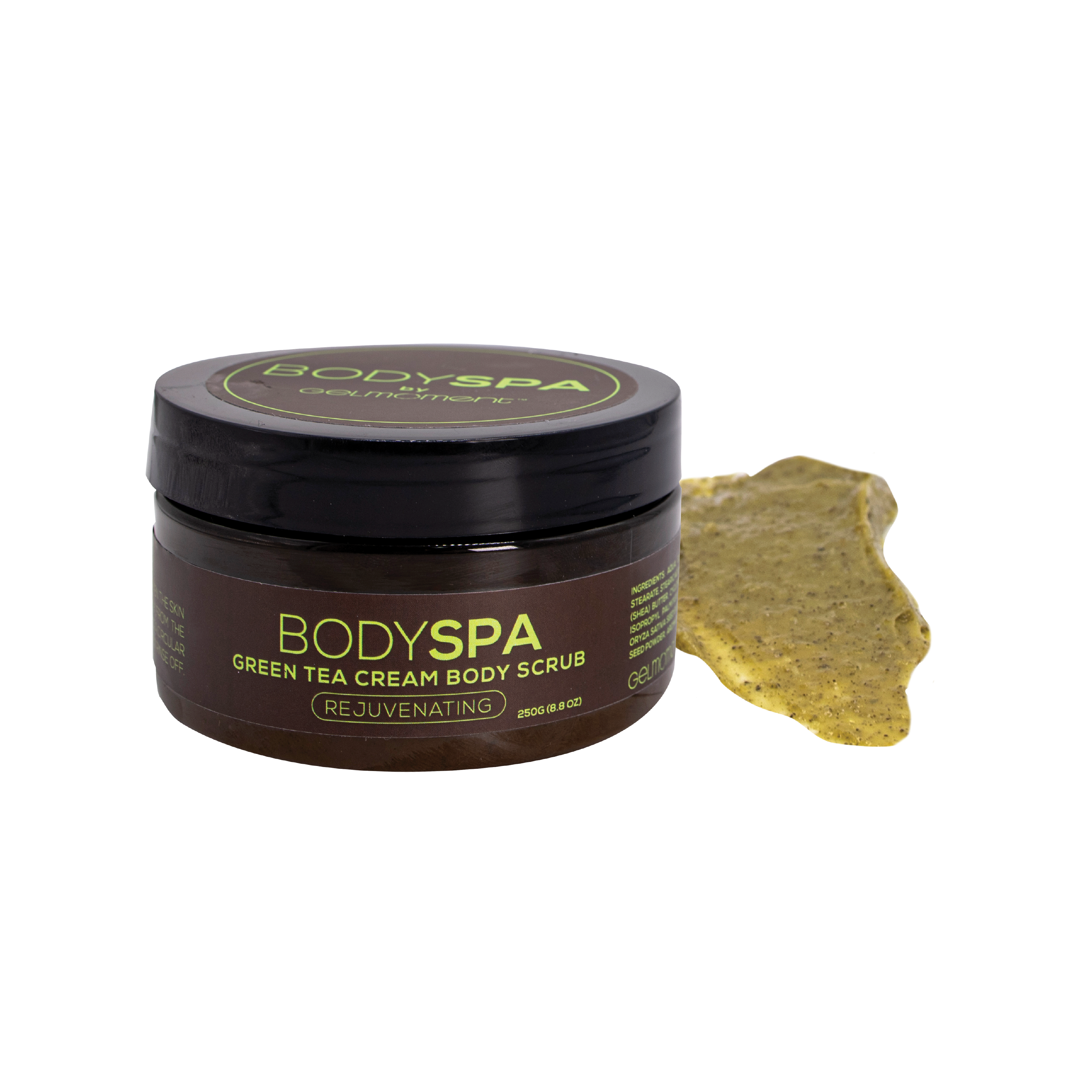 Green Tea Body Cream Scrub is a luxurious matcha-scented Shea butter cream that also exfoliates, providing anti-aging properties to your skin as you use it, and beyond. Natural green tea contains powerful antioxidants to help reduce wrinkles and avoid early aging all over your body.